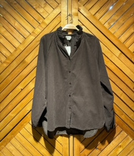 La chemise en velours fin à col montant signée Eugenia Boutique allie confort et sophistication.